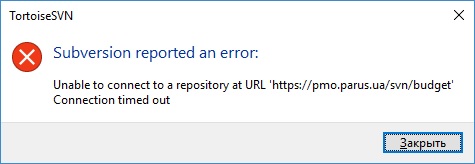 Версія клієнта: TortoiseSVN 1.9.4, Build 27285 - 64 Bit , 2016/04/24 13:59:58 Змінилася адреса сервера? У когось оновлюється? Клієнт наявність оновлень своєї версії перевіряє нормально, тобто вихід назовні є. Як перевірити чи є підключення до репозиторію? |
